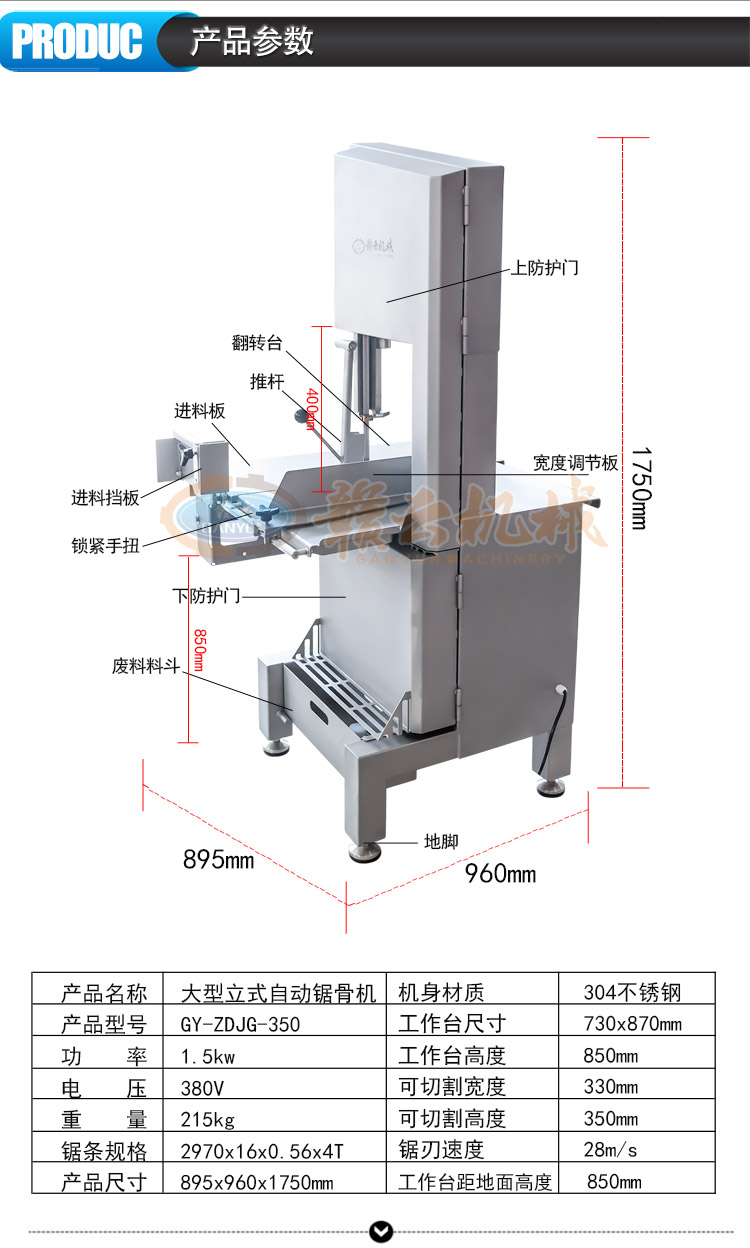 今天我們要講解的是功能更加齊全的贛云牌鋸骨機,立式鋸骨機,佩帶寬度調節,兩種類型推桿,廢料收集器,操作簡單安全。