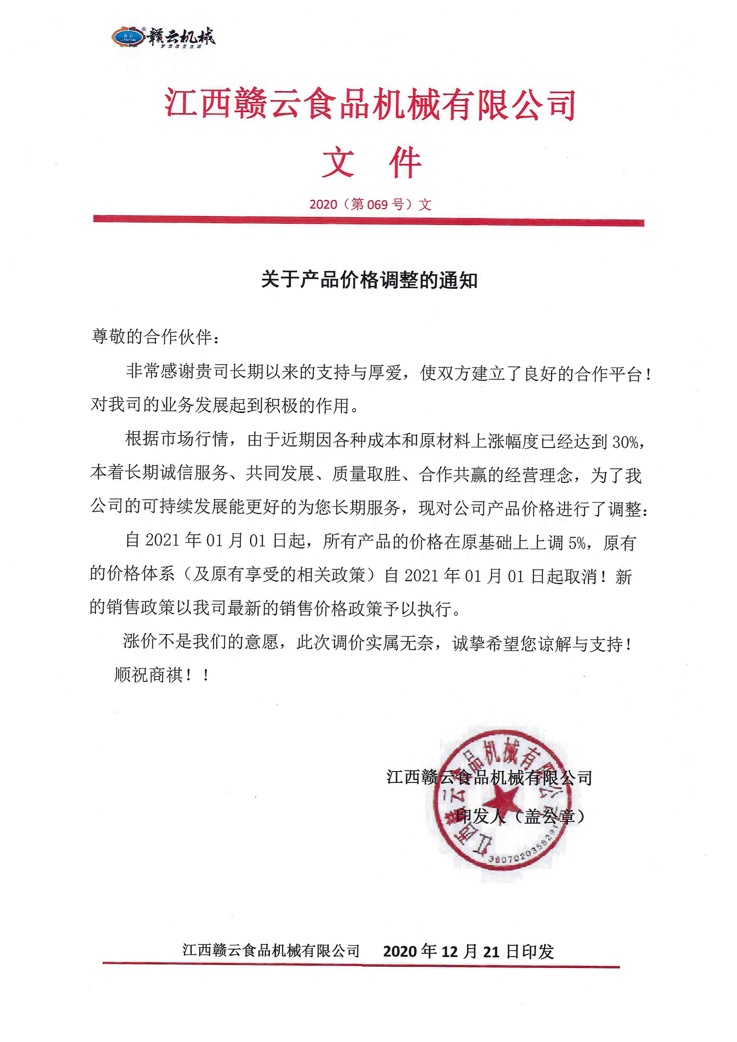 [緊急通知]2021年1月1日起所有設備正式漲價