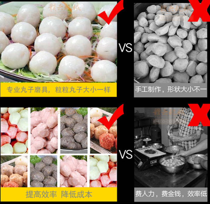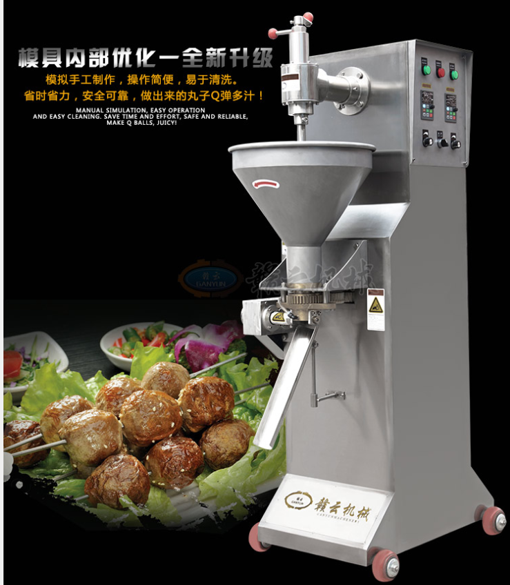 在機器沒有代替人工前,那時候的肉丸子確實是通過人工一個個捏制而成的,但是隨著市場的需求越來越大,隨著科技進步和機械化高效率,對此技術的不斷創新,而為了市場越來越大的需求生產出來了現在的肉丸子機器,丸子機一般分為包心肉丸機和實心肉丸機