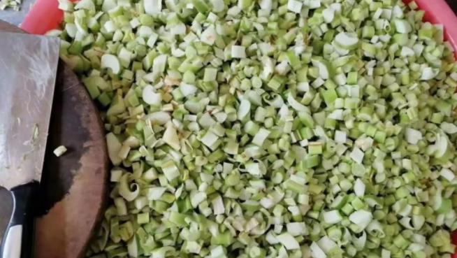 第二種就是將整根芋梗清洗干凈后曬成半干后,切成1至3厘米后繼續晾干,在這期間需要注意控制水曬干的水份,最后封在食品袋,這樣的干品適合搭配其它臘肉一起做成菜品,最后作出的味道都是根據主食材決定的。